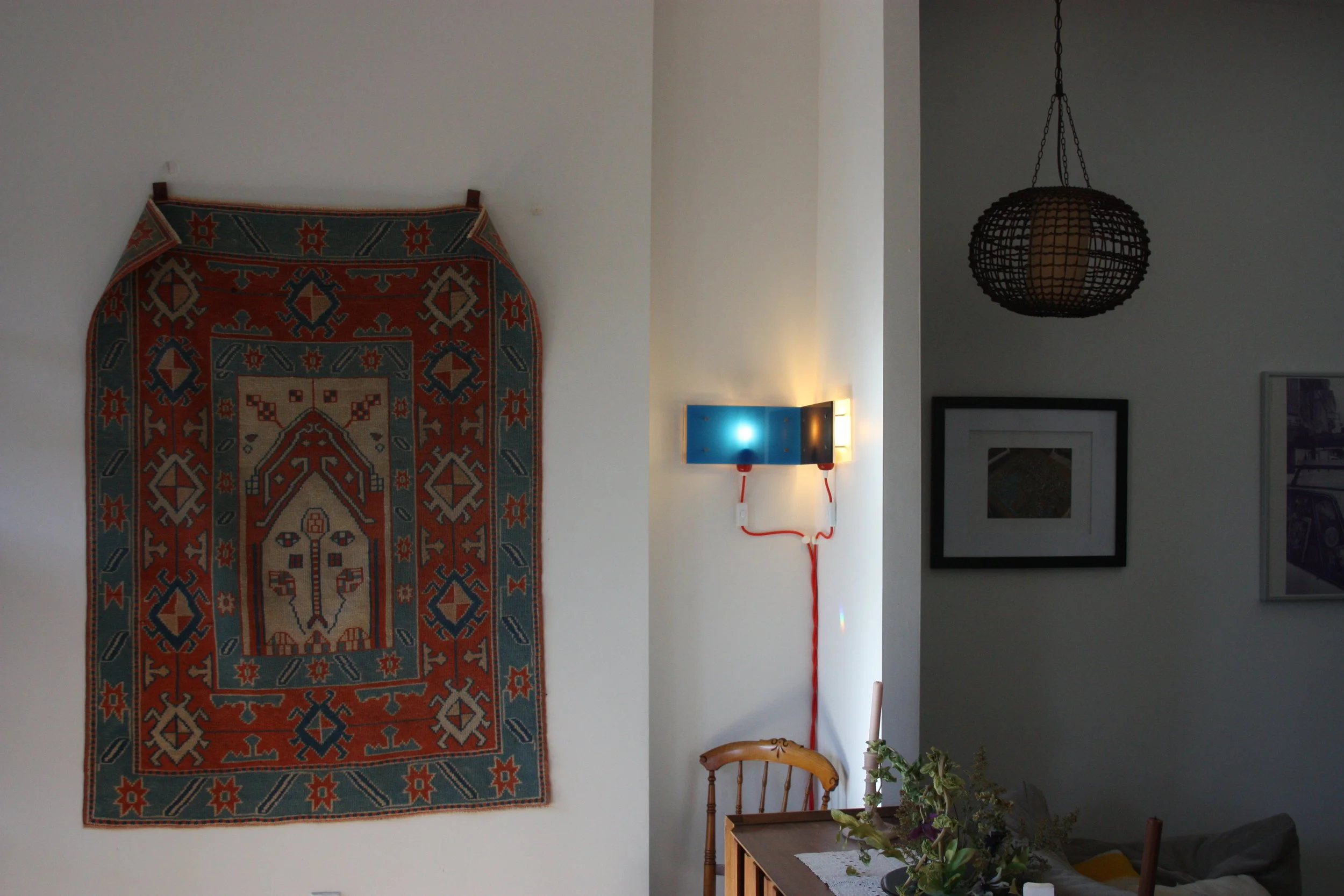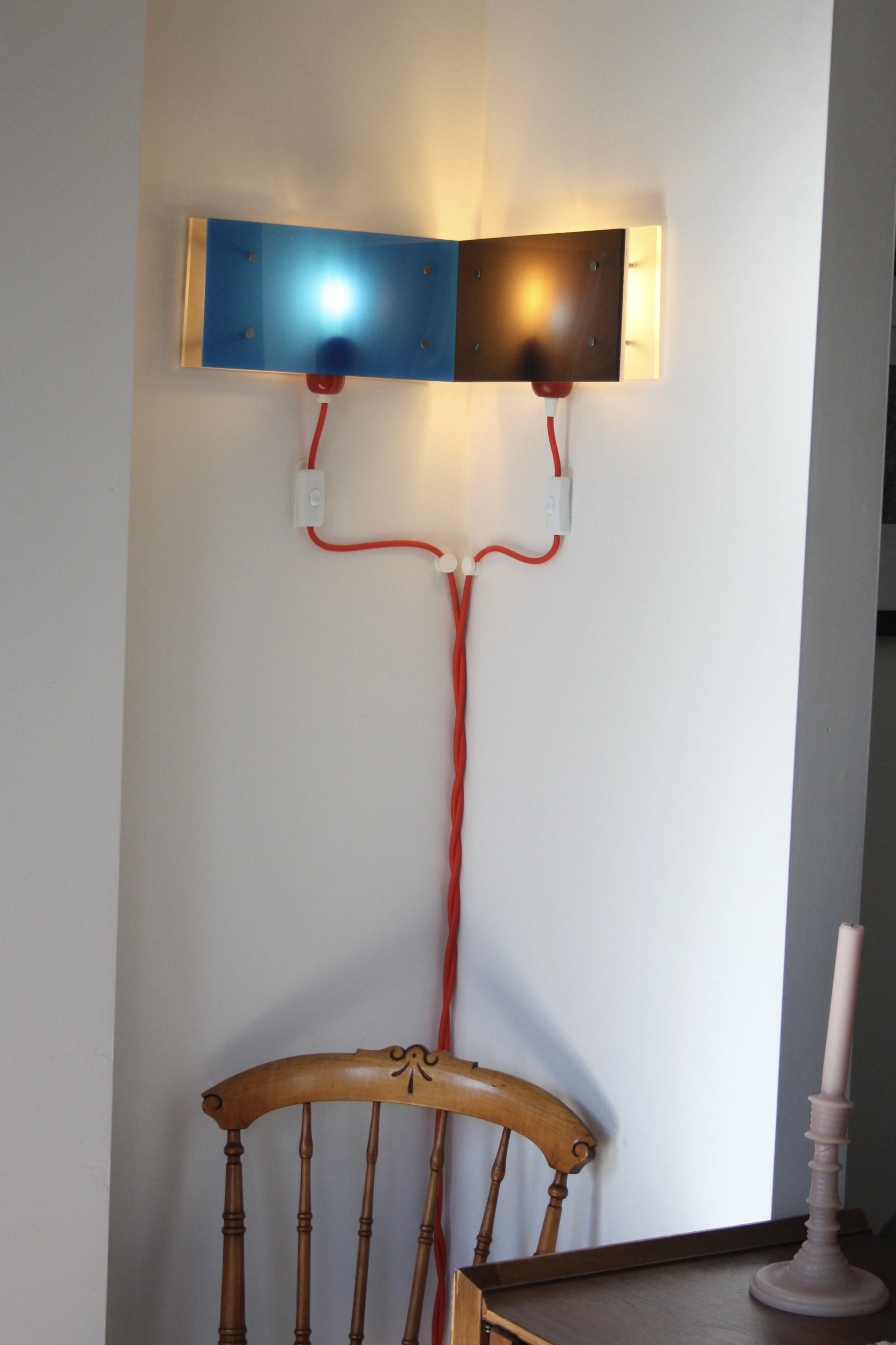 Lighting Corner Lamp Slide 1 Slide 1 (current slide) Slide 2 Slide 2 (current slide) Slide 3 Slide 3 (current slide) Corner LampAcrylic, in blue and sepia, custom fixtures